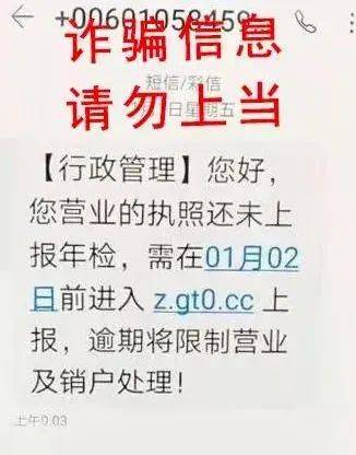 3月1日經營貿易公司的王女士收到了一條短信,內容為:企業工商年報馬上截止,年報前需先錄入企業信用檔案庫,你企業已被我方檔案庫收錄,營業執照信息尚未公示,點擊公示網址,完成具體操作。通知下方還附帶了一條網址。
